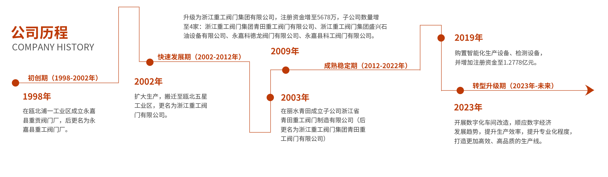浙江重工閥門(mén)集團(tuán)始創(chuàng)于1999年,總部座落在溫州永嘉甌北五星工業(yè)區(qū),總占地面積23800多平方,注冊(cè)資金1.2778億元,集團(tuán)旗下?lián)碛?家子公司,其中全資子公司3家,控股公司2家。公司采用先進(jìn)的管理模式,實(shí)行產(chǎn)品專業(yè)化分類(lèi)生產(chǎn)和銷(xiāo)售,提高產(chǎn)品質(zhì)量。主要生產(chǎn)基地分布在:浙江溫州、麗水和青田等地,是一家集產(chǎn)品研發(fā)、設(shè)計(jì)、制造與銷(xiāo)售為一體的專業(yè)閥門(mén)企業(yè),在溫州甌北總部設(shè)立:辦公中心、科研中心、銷(xiāo)售中心、質(zhì)控中心和全過(guò)程網(wǎng)絡(luò)管理中心……